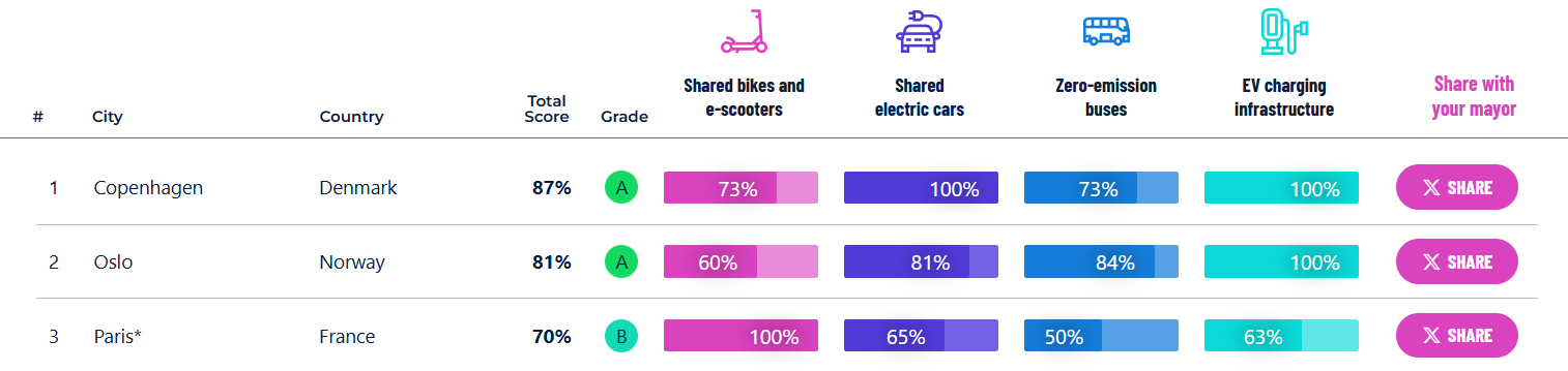Zárásként pedig íme egy projekt, aminek keretében az európai nagyvárosokat értékelik a fenntartható közlekedés szempontjából. Talán nem is olyan meglepő, hogy az első helyen Koppenhága áll, de Budapest is a 17. a 42-ből. Részletesebb összehasonlításhoz az oldal itt érhető el.
