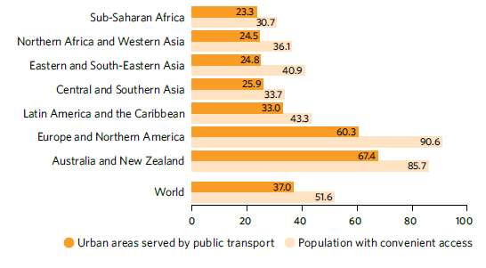 A fejlett országokban az emberek általában több közlekedési lehetőség közül választhatnak, míg a fejlődő országokban, ahol becslések szerint még körülbelül 1 milliárd ember nem fér hozzá minden időjárási körülmények között használható úthálózathoz, az emberek és áruk mobilitás iránti kereslete évente exponenciálisan nő. A 2022-es adatok szerint a globális városi lakosság csupán 51,6%-ának van kényelmes hozzáférése a tömegközlekedéshez. Az országoknak és városoknak előtt hosszú út áll a biztonságos, megfizethető, hozzáférhető és fenntartható közlekedési rendszerek kialakítása terén.
