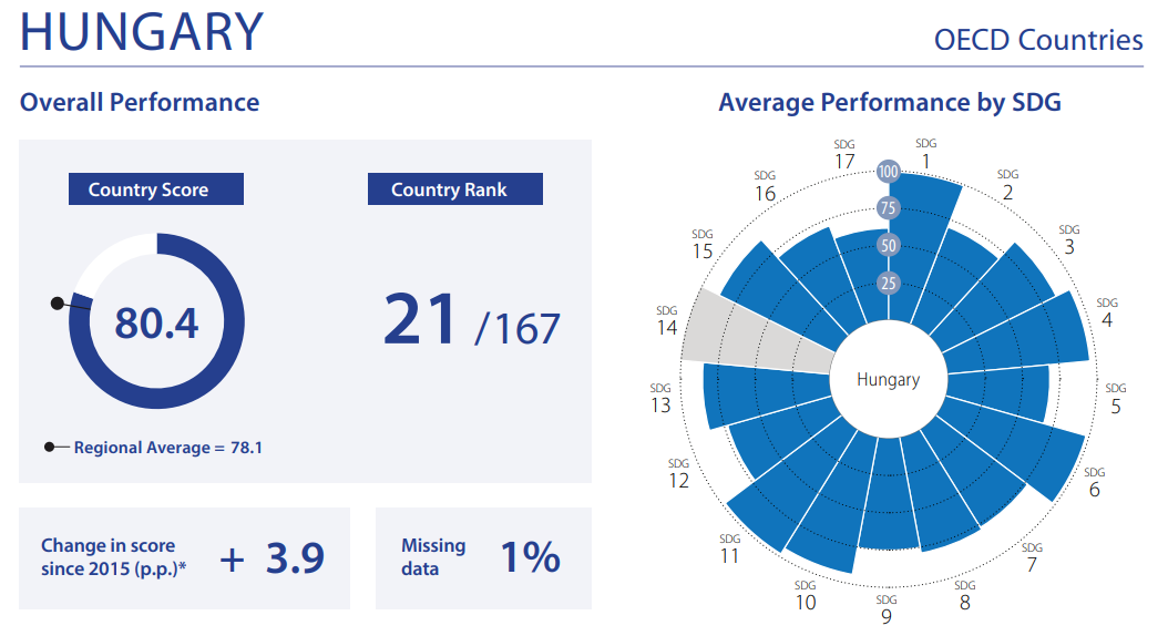 Magyarország, mint tengerparttal nem rendelkező ország, a 2025-ös SDG Indexen az előkelő 21. helyen áll 80.4 ponttal.