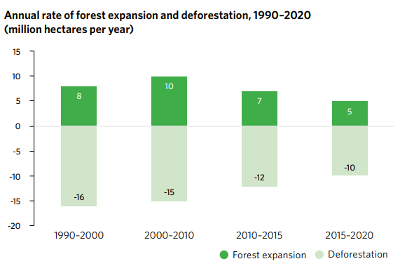 Az erdőirtás üteme a 2010–2015 közötti időszak évi 12 millió hektárról a 2015–2020 közötti időszakban évi 10 millió hektárra mérséklődött. Ez a lassulás azonban kevésnek bizonyul. Az SDG15.2-es alcél, ami az erdőirtás 2020-as megállítását tűzte ki célul, ezzel kudarcot vallott. A jelenlegi trendek mellett még negyed évszázadba telne az erdőirtás teljes felszámolása. A nettó erdőveszteség, figyelembe véve az erdőtelepítéseket és a természetes terjedést is, továbbra is évi 4,7 millió hektár körül alakul.