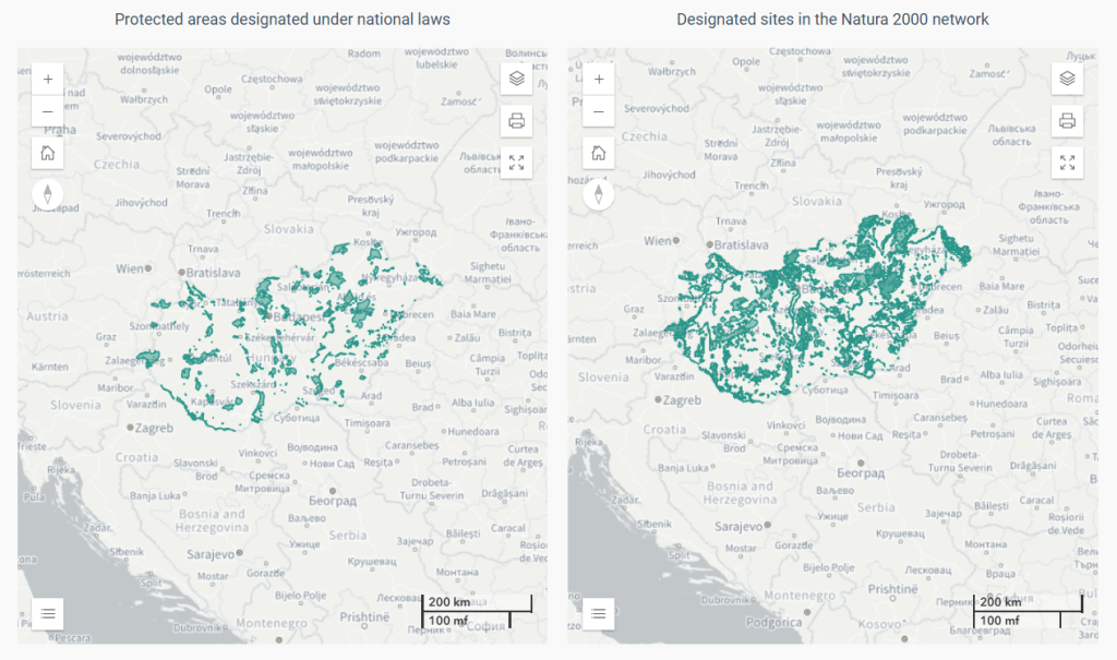Magyarországon a Natura 2000 hálózat lefedi a védett területek több mint felét. A probléma azonban nem a kijelölés hiánya, hanem a kezelés intenzitása. A védett területek jelentős részén (43% erdő, 45,4% agroökoszisztéma) gazdasági tevékenység zajlik. A „papírparkok” jelensége helyett Magyarországon inkább a „gazdasági hasznosítású védett területek” dilemmája áll fenn: hogyan lehet összeegyeztetni az erdőgazdálkodást és a nagyüzemi mezőgazdaságot a biodiverzitás megőrzésével? A jelentés szerint a fajok és élőhelyek védelmi státusza (Conservation Status) vegyes: a halak helyzete viszonylag jó (83,3% jó státusz), míg a hüllők és bizonyos élőhelytípusok (pl. homokpuszták) állapota kritikus.