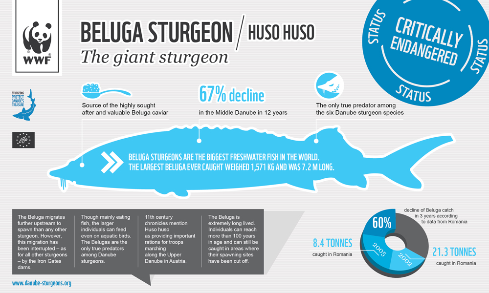 - Beluga tok (Huso huso) – kritikusan veszélyeztetett
